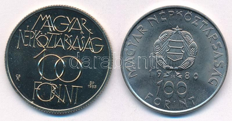 1980. 100Ft Ni "Szovjet-magyar közös űrrepülés" + 1985. 100Ft Cu-Ni "Kulturális Fórum Budapest" T:1,1-