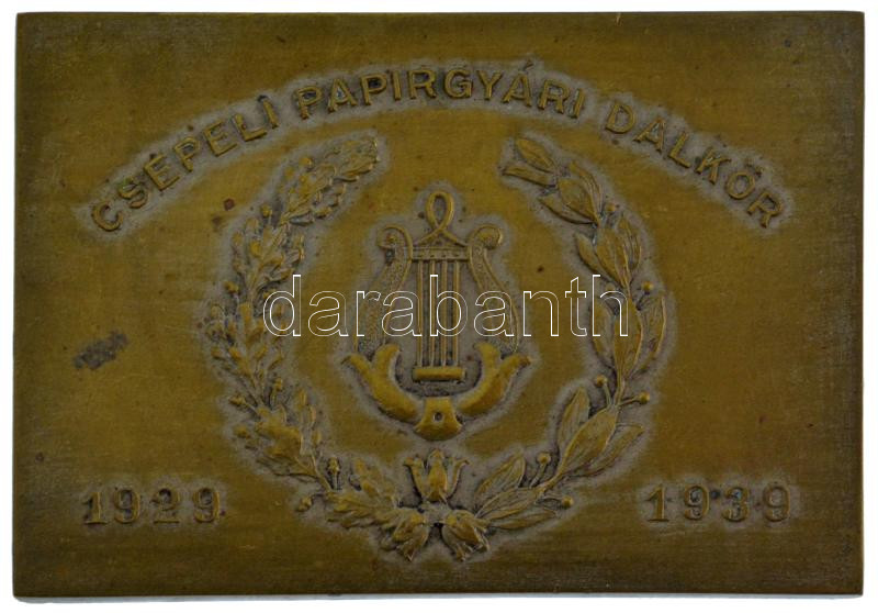 https://www.darabanth.com/en/436-Online-auction/436.0/Numismatics/Hungarian-commemorative-medals-and-plaques~1500009/1939-Csepeli-Papirgyari-Dalkor-egyoldalas-bronz-plakett-56x80mm-T1-~II2827229