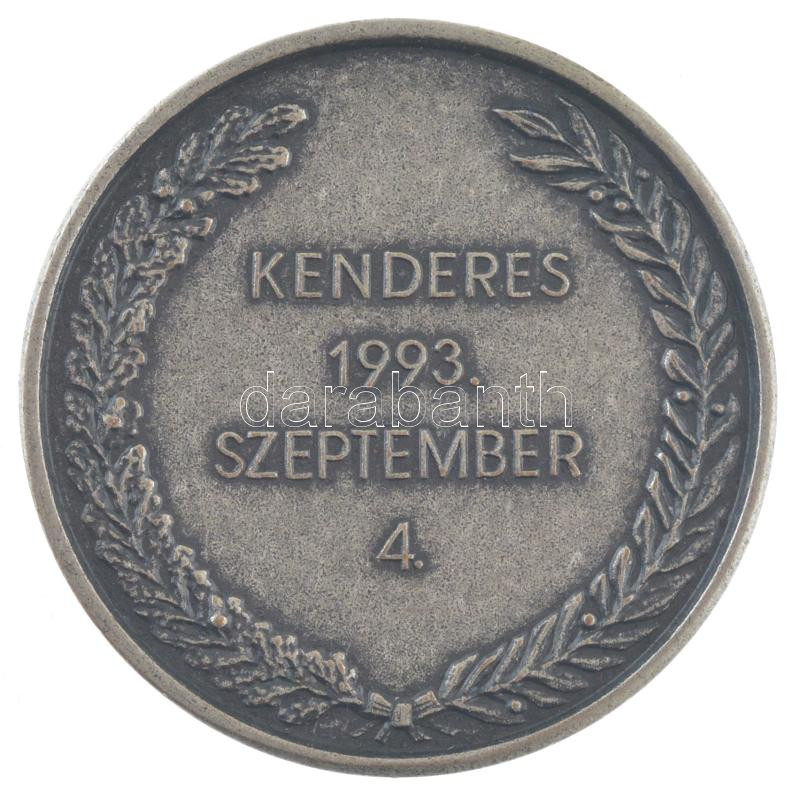Description: Berán Lajos (1883-1943) 1993. "Vitéz Nagybányai Horthy Miklós és felesége / Kenderes 1993. szeptember 4." ezüstpatinázott bronz emlékérem tokban, sérült tanúsítvánnyal (40mm) T:1-