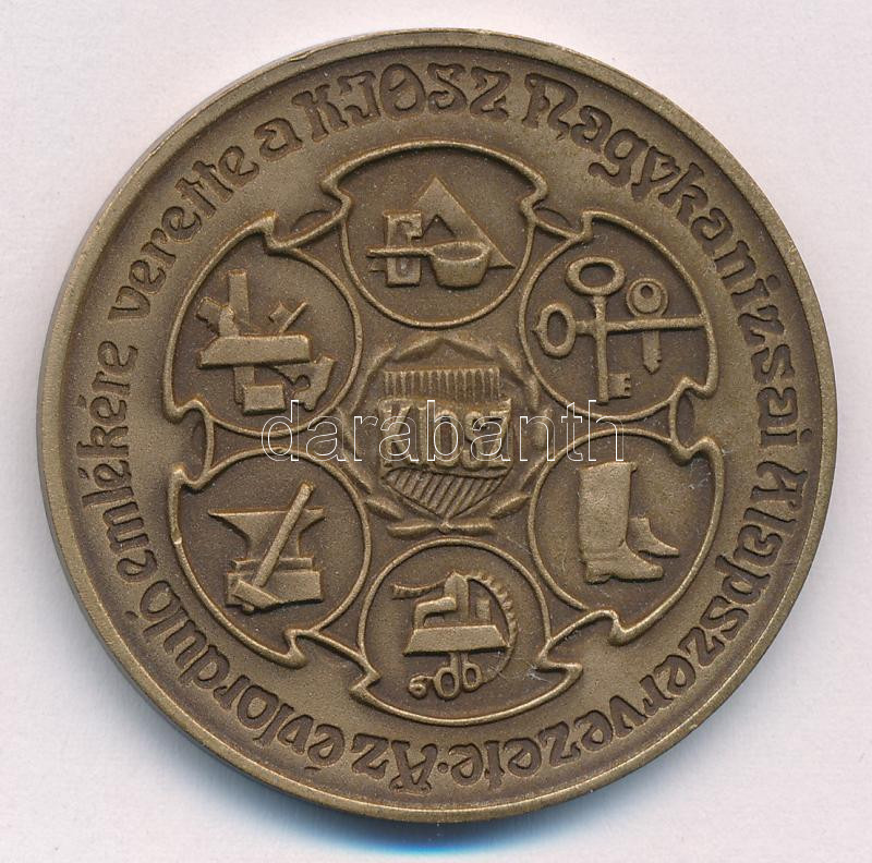 Bogár Lívia (1957-) 1986. "100 éves a Nagykanizsai Ipartestület 1886-1986 / KIOSZ" kétoldalas bronz emlékérem (42,5mm) T:1- patina Adamo NKe4