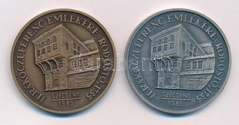 Description: Bognár György (1944-) 1985. "MÉE Szécsény / II. Rákóczi Ferenc halálának 250. évfordulójára - Rodostó" bronz emlékérem (42,5mm) + ezüstpatinázott bronz emlékérem (42,5mm) T:1- Adamo SY4