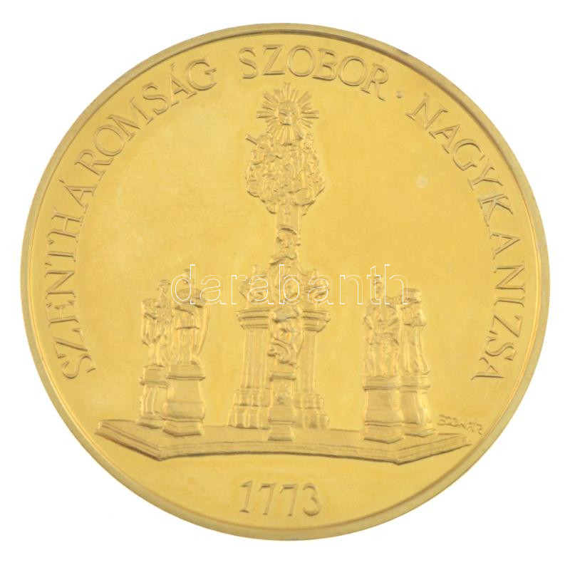 Description: Bognár György (1944-) 1995. "Kanizsa első írásos emlékének 750. évfordulója 1245-1995 / Szentháromság szobor Nagykanizsa 1773" kétoldalas bronz emlékérem (42,5mm) T:1-