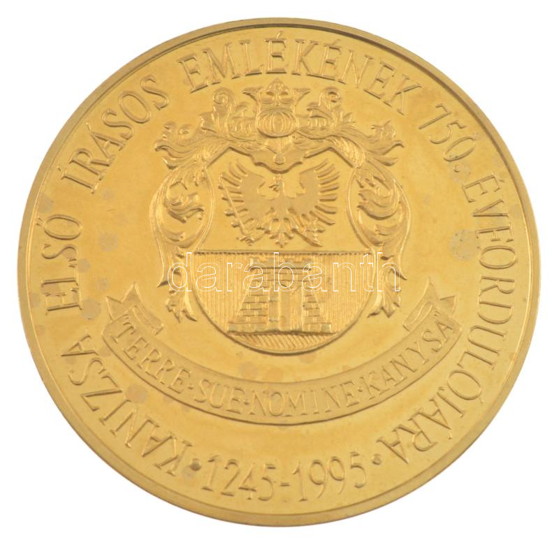 Bognár György (1944-) 1995. "Kanizsa első írásos emlékének 750. é... https://www.darabanth.com/en/436-Online-auction/436.0/Numismatics/Hungarian-commemorative-medals-and-plaques~1500009/Bognar-Gyorgy-1944-1995-Kanizsa-elso-irasos-emlekenek-750-evforduloja-1245-1995-Sze~II2834904