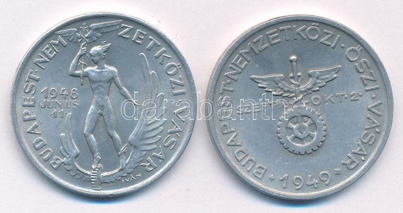 Description: Iván István (1905-1968) 1948. június 11. "Magyar Állami Pénzverő - Budapesti Nemzetközi Vásár" Al emlékérem (32mm) + 1949. "Magyar Állami Pénzverő / Budapesti Nemzetközi Őszi Vásár" Al emlékérem (32mm) T:2