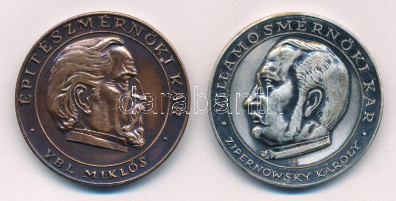 Description: Kákonyi István (1917-1993) 1982. "Budapesti Műszaki Egyetem / Ybl Miklós" kétoldalas bronz emlékérem (40mm) + "Budapesti Műszaki Egyetem / Zipernowsky Károly" kétoldalas ezüstözött bronz emlékérem (40mm) T:1,1-