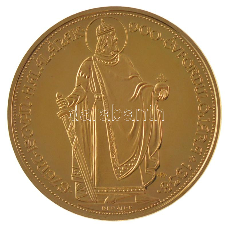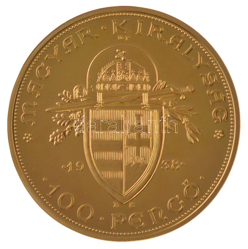 https://www.darabanth.com/en/436-Online-auction/436.0/Numismatics/Modern-restrikes-fantasy-coins~1500010/1938-100P-aranyozott-Cu-utanverete-R-jelzessel-kapszulaban-45mm-TPP~II2807892