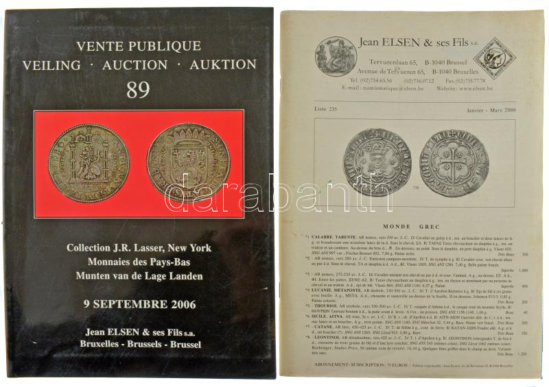 Jean Elsen: 89. aukciós katalógus. Brüsszel, 2006. + Jean Elsen: képes... https://www.darabanth.com/en/436-Online-auction/436.0/Numismatics/Numismatics-Literature~1500002/Jean-Elsen-89-aukcios-katalogus-Brusszel-2006-plus-Jean-Elsen-kepes-katalogus-Brusszel-20~II2834798