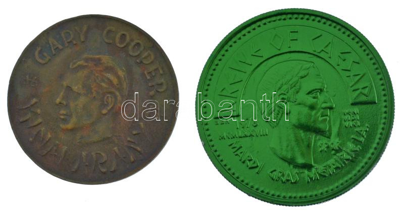 ~1936. "Gary Cooper - Kínai Arany" Cu-Zn reklám érem (34mm) + 1984. "Krewe of Caesar / Great Ages of Man eloxált Al érem (40mm) T:1-2 karc