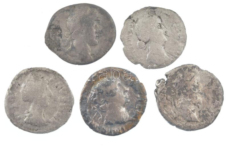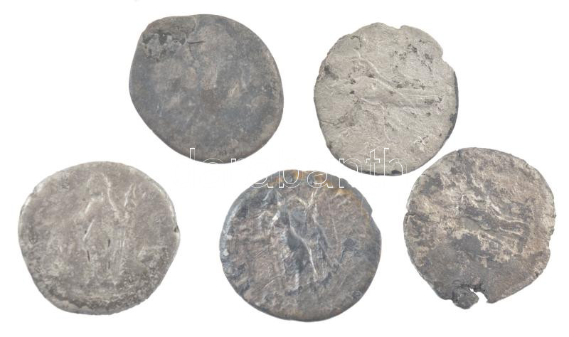 Római Birodalom 5db-os Ag Denár érmetétel a II-III. századból T:3,2- Roman Empire 5pcs Ag Denarius coin lot from the 2nd-3rd century C:F,VG