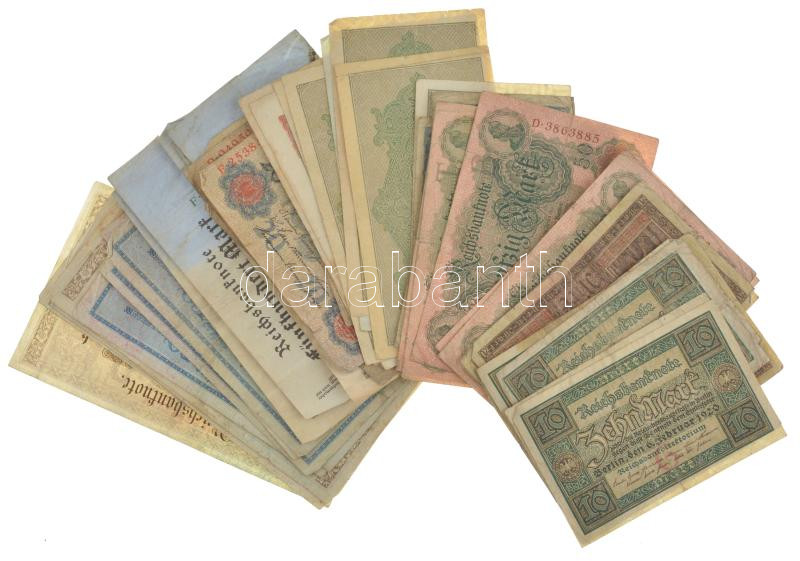 Németország ~1910-1920. 50 darabos vegyes német bankjegy tétel (10xklf) T:III,III- közte tűlyuk, folt, szenny., szakadás, lyuk, saroktörés, anyaghiány Germany ~1910-1920. 50 pieces mixed german banknote lot (10xdiff) C:F,VG include needle hole, spotted, dirty, torn, hole, folded corner, missing paper