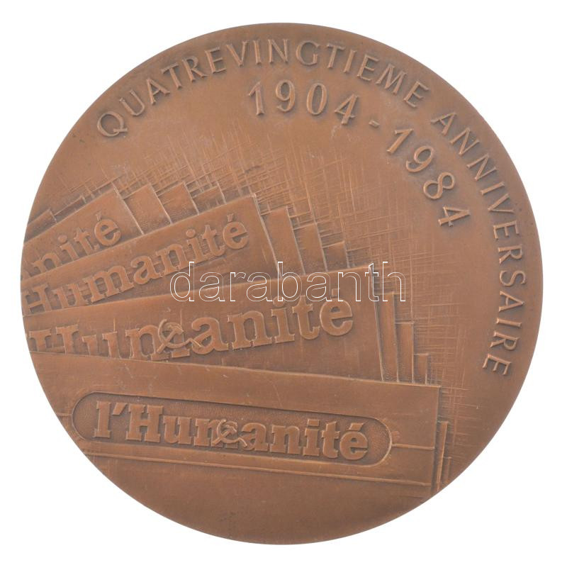 https://www.darabanth.com/en/436-Online-auction/436.0/Numismatics/Worldwide-commemorative-medallions-and-plaques~2500003/Franciaorszag-1984-Marcel-Cachin-Jean-Jaures-LHumanite-80-evforduloja-ketoldalas-jelze~II2833682