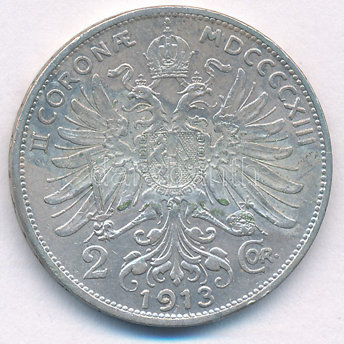 https://www.darabanth.com/en/436-Online-auction/436.0/Numismatics/Worldwide-silver-and-metal-coins~2500002/Ausztria-1913-2K-Ag-Ferenc-Jozsef-T2-2-patina-Austria-1913-2-Corona-Ag-Franz-Joseph-CXF-V~II2827532