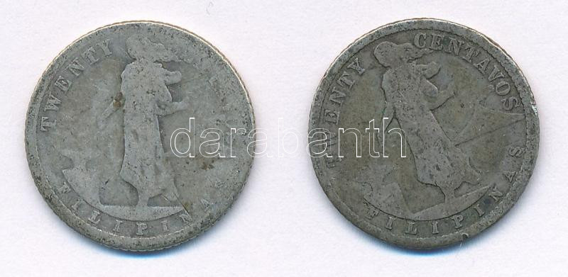 Description: Fülöp-szigetek / Amerikai Egyesült Államok Közigazgatás 1908 20c Ag + 1914. 20c Ag T:3 ph