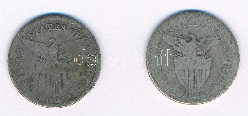 Fülöp-szigetek / Amerikai Egyesült Államok Közigazgatás 1908 20c Ag + ... https://www.darabanth.com/en/436-Online-auction/436.0/Numismatics/Worldwide-silver-and-metal-coins~2500002/Fulop-szigetek-Amerikai-Egyesult-Allamok-Kozigazgatas-1908-20c-Ag-plus-1914-20c-Ag-T3-ph-Phi~II2835003