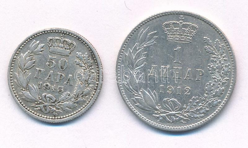 Szerbia 1912. 1D Ag "I. Péter" + 1915. 50p Ag "I. Péter" T:2 patina
