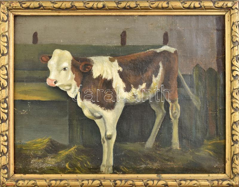 Jelzés nélkül: Boci. Olaj, vászon. Javított. Kissé sérült. Dekoratív fakeretben. 29×39 cm