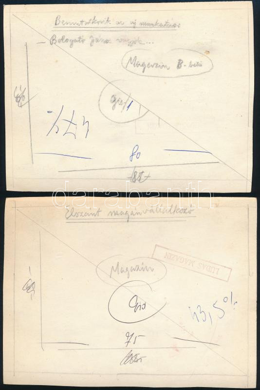 Description: Szegő Gizi (Gis), (1902-1985): Ludas Matyiban megjelent grafikák, karikatúrák vázlatai. 10 db. Vegyes technika, papír, összes jelzett. Hátoldalán "Ludas Matyi Szerkesztősége" vagy "Ludas Magazin" bélyegzővel. 15x19 cm körüli méretekben.