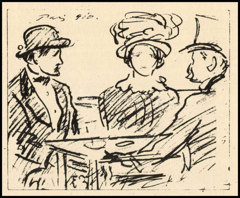 Vaszary János (1867-1939): Párizsi kávéházban. Ofszet, papír, jelzés n...