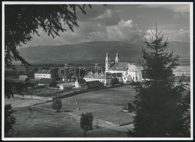1940 Csíksomlyó (Erdély), idegenforgalmi fotó, Magyar Film Iroda Rt. pecséttel jelzett, hátoldalon feliratozott fotója, szép állapotban, 13×17,5 cm