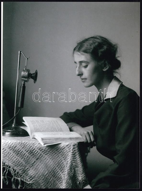 cca 1924 Kerny Gizella fontos hívást vár, 1 db mai nagyítás Kerny István (1879-1963) budapesti fotóművész hagyatékából, 24x17,7 cm