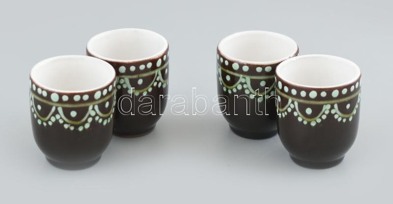 4 db retró kerámia pálinkás pohár, jelzett, hibátlan, m: 6 cm