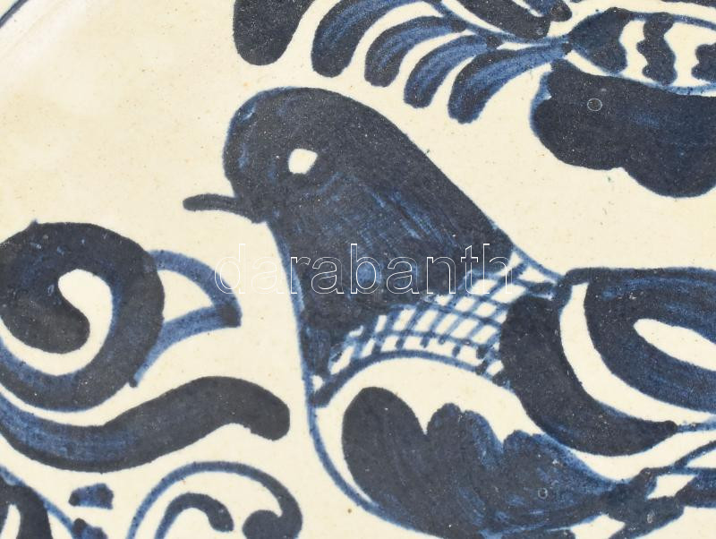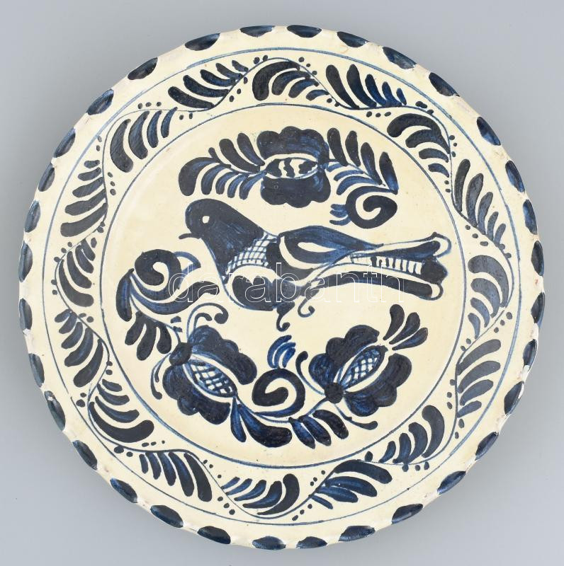 Korondi madaras tányér, jelzés nélkül, kopásokkal, d: 31 cm