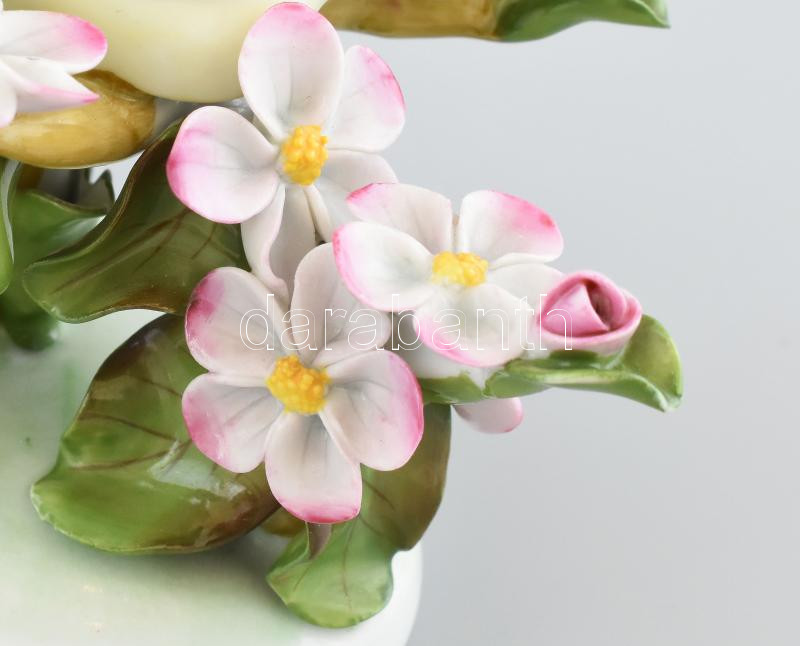 Herendi madarak virágokon. Kézzel festett. jelzett, egyik csőrén minimális restaurálás, kis mázhiba, ragasztott, 16x12x11,5 cm