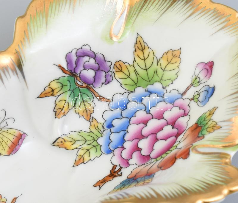 Herendi porcelán Viktória mintás leveles tálka, kézzel festett, jelzet...