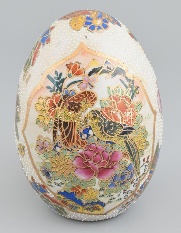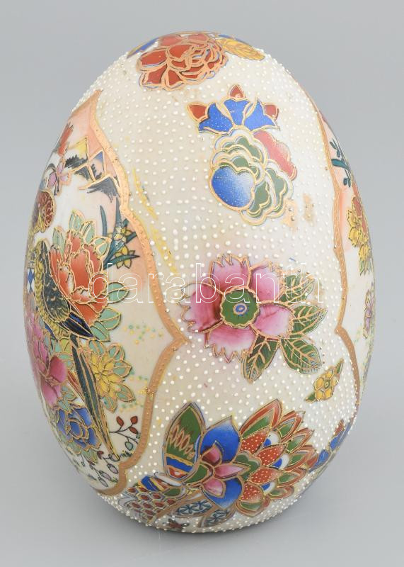 Keleti porcelán tojás, jelzés nélkül, kopásokkal, m: 15 cm
