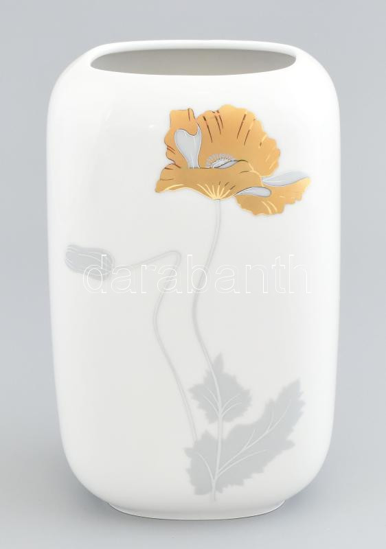 Scherzer Bavaria szecessziós stílusú, pipacsos porcelán váza, XX. sz. második fele. Matricás, jelzett, hibátlan, m: 21 cm