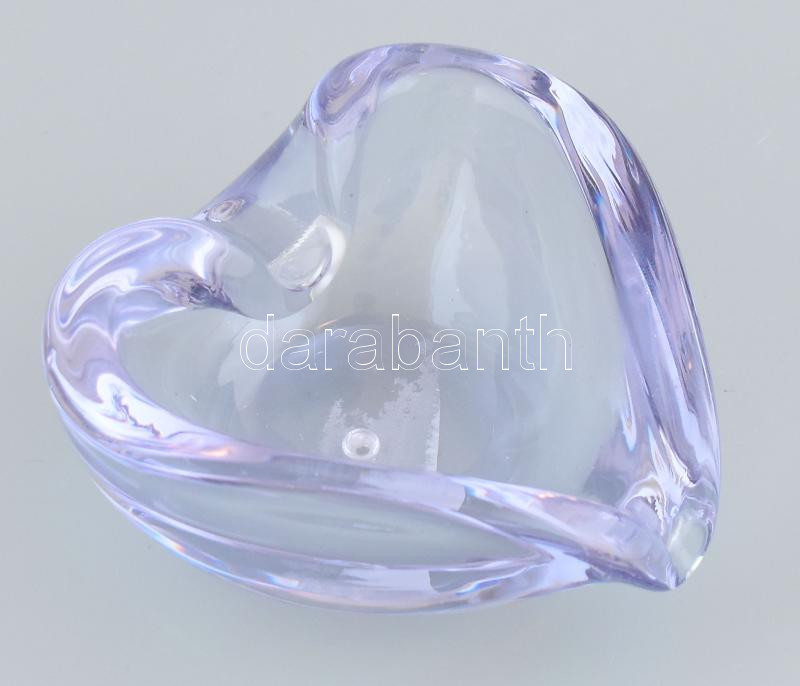 Murano szív alakú, lila üveg tálka, anyagában színezett, hibátlan, jel...