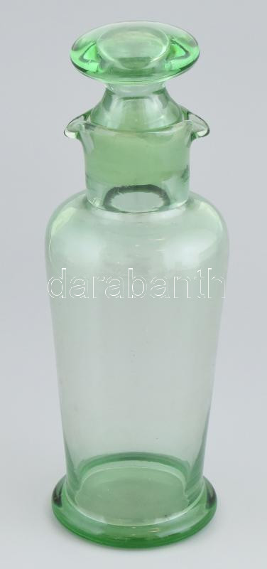 Zöld üveg kiöntő, dugóval, hibátlan, m: 24,5 cm