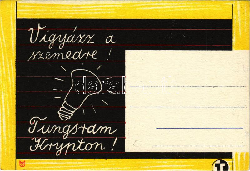 Vigyázz a szemedre! Tungsram Krypton izzó reklámlapja / Hungarian light bulb advertisement postcard s: Macskássy