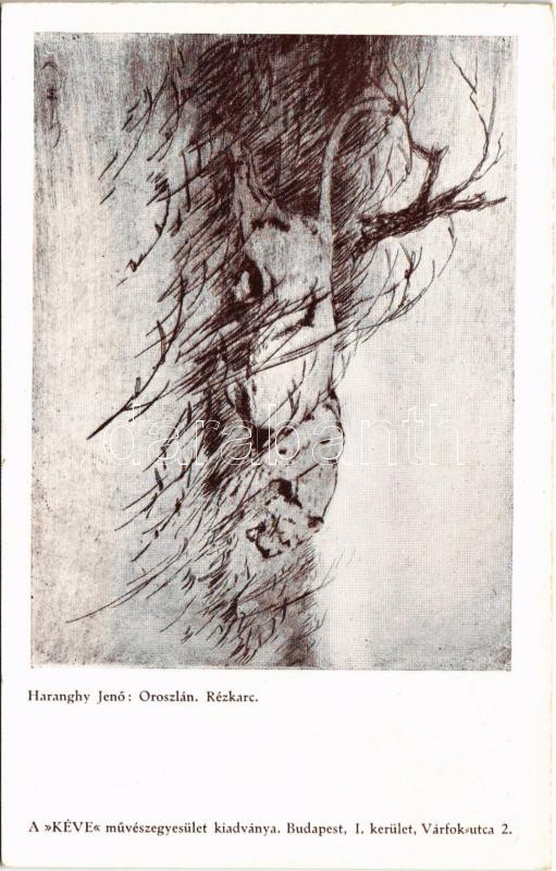 Oroszlán - rézkarc. Kéve művészegyesület kiadása s s: Haranghy Jenő