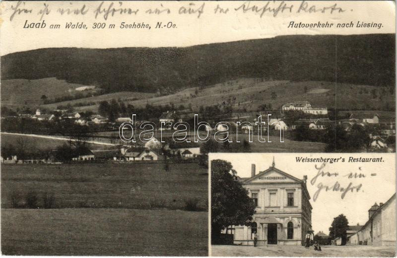 1922 Laab im Walde, Autoverkehr nach Liesing, Weissenberger's Restaurant / restaurant (EK)