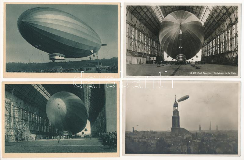 Zeppelin léghajók - 4 db régi képeslap / Zeppelin Luftschiff / Zeppeli...