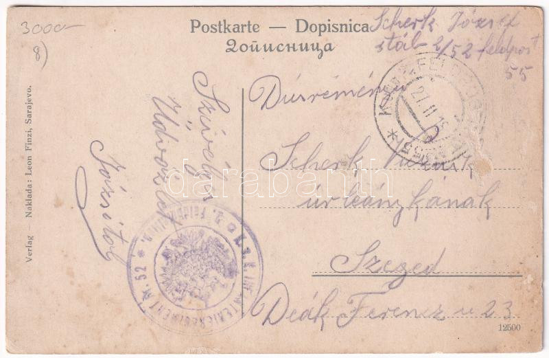 Bosna, Bosnien; Lammbraten am Spiess / bosnyák nyárson sült bárány / Bosnian roast lamb on a spit, folklore + "K.U.K. FELDPOSTAMT No. 55" (Rb)