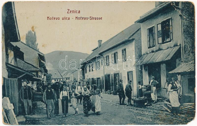 Zenica, Kocevo ulica / Kocevo-Strasse / street view, shops. W.L. Bp. 4...