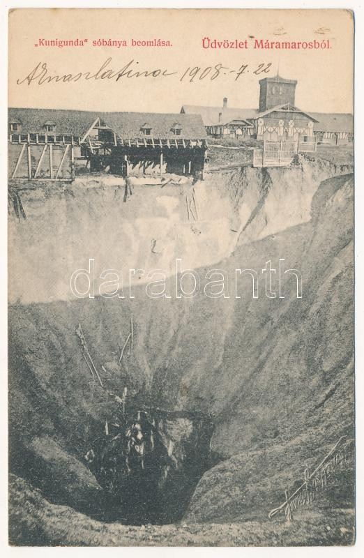 1908 Aknaszlatina, Akna Slatina, Slatinské Doly, Szolotvino, Solotvyno (Máramaros); Kunigunda sóbánya beomlása. Berger Miksa kiadása / mine collapse (EK)
