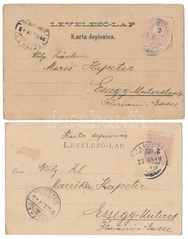 1899 (Vorläufer) Diakovár, Djakovo, Dakovo; 2 hosszú címzéses képeslap / 2 pre-1900 postcards