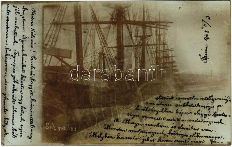 1903 Fiume, Rijeka; kikötő, hajó / port, ship. Soh photo (EB)