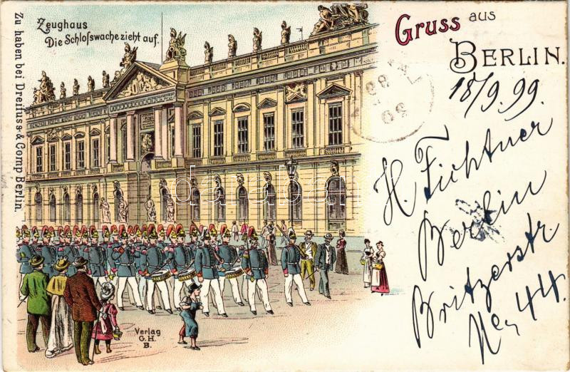 1899 (Vorläufer) Berlin, Zeughaus. Die Schlosswache zieht auf / armory, castle guard. Dreifuss & Comp. Art Nouveau, litho