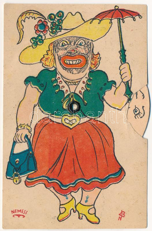 1940 Humoros mechanikus lap 8 különféle kiforgatható arccal / Humorous mechanical card