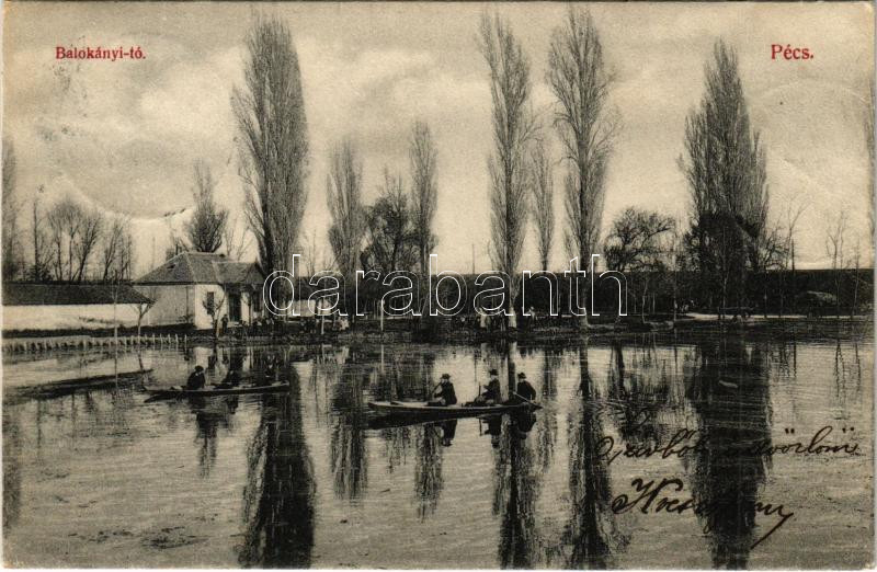 1907 Pécs, Balokányi tó, csónakázók. Blancz József kiadása