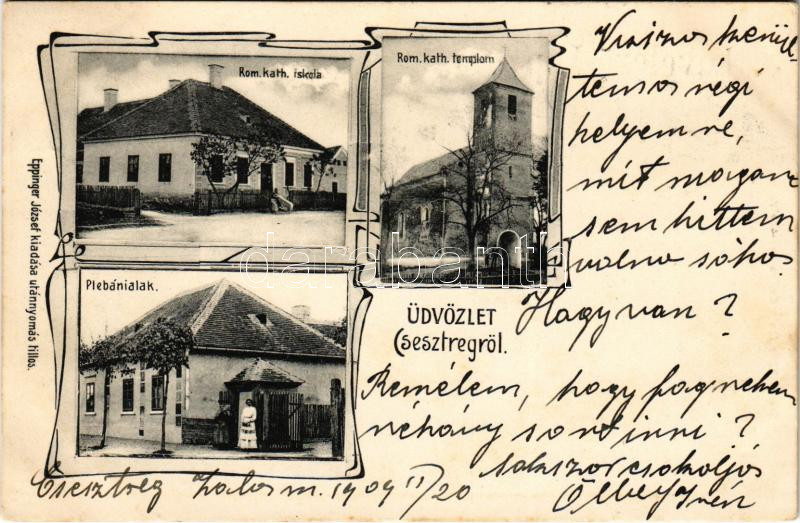 1909 Csesztreg, Római katolikus templom és iskola, Plébánialak. Epping...