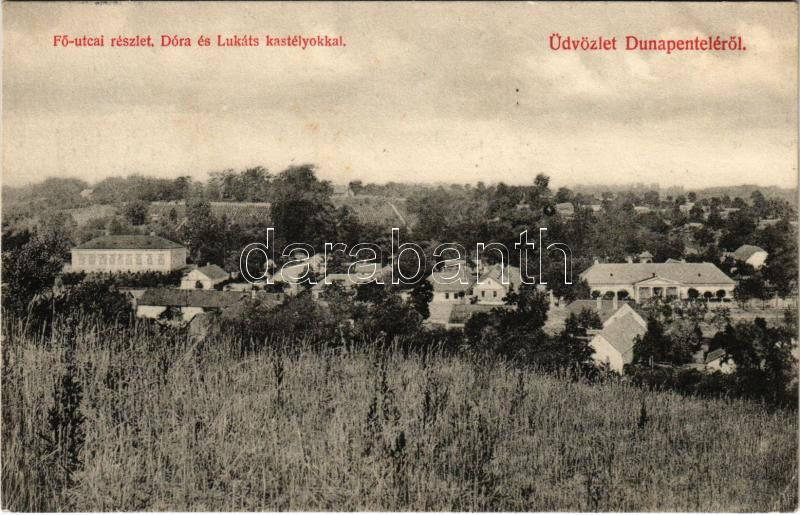 1909 Dunaújváros, Dunapentele, Sztálinváros; Fő utca, Dóra és Lukáts kastélyok. Kanitz József kiadása (EK)