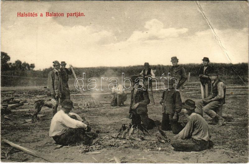 Balaton, Halsütés a parton. Divald Károly 1068-1908. (EB)