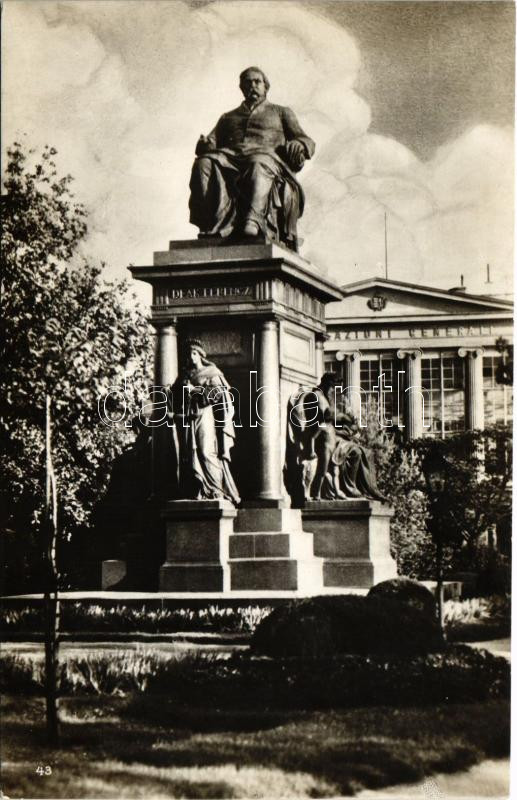 Budapest V. Deák Ferenc szobor, háttérben a Lloyd palota, mely elpusztult a második világháborúban