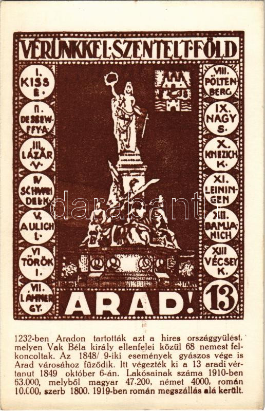 Arad, Vérünkkel szentelt föld - Irredenta képeslap a Vértanú szoborral...