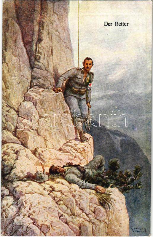 Description: Der Retter. Offizielle Karte für Rotes Kreuz, Kriegsfürsorgeamt Kriegshilfsbüro Nr. 191. / WWI Austro-Hungarian K.u.K. military art postcard, field medic s: C. Benesch (EK)